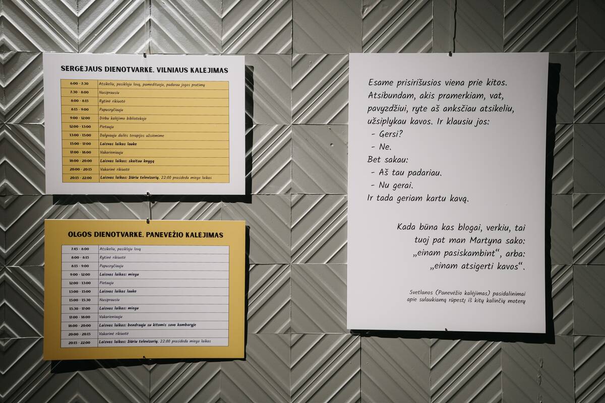 Ekspozicija tampa patyrimine erdve, kviečiančia pažiūrėti kalinčiam žmogui į akis, išgirsti jo jautrius prisipažinimus ir balsą. Tai erdvė, kurioje pasitelkdami kūrybą nuteistieji kalba patys už save.