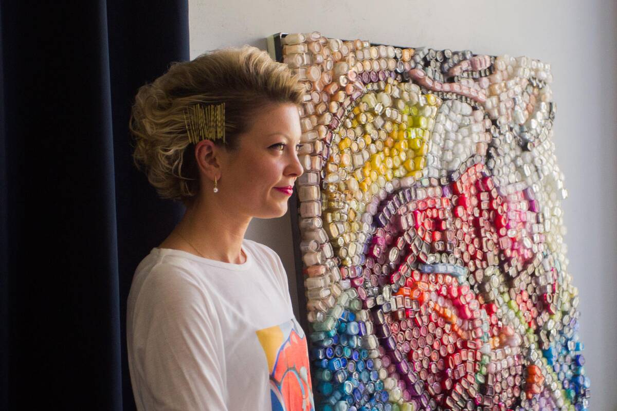 „Prieš metus, išvien surėmus pečius su kompanija „Avon“, pradėjome vykdyti akciją, kurios metu surinkome apie 5000 panaudotų nagų lako buteliukų. Šiuos buteliukus išrūšiavau į 21 atspalvį. Tuomet, kartu su savo studenčių - pagalbininkių komanda, pasipuošusios kaukėmis ir pirštinėmis kibome į nagų lako ištaškymo procesą. Nuostabiai praleidome laiką gamtos apsuptyje (Užupio meno inkubatoriuje), o ištaškytus nagų lakus panaudojome abstrakčiai tapybai: gimė keletas paveikslų“ – pasakojo menininkė.