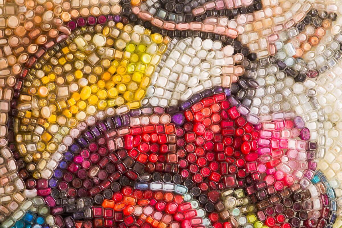 Sukurta spalvota meno instaliacija – panaudotų nagų lako buteliukų vitražas. Vitražo matmenys: 1 metras į plotį ir 1,45 metro į aukšrtį, panaudoti atrinkti 1969 nagų lako buteliukai.