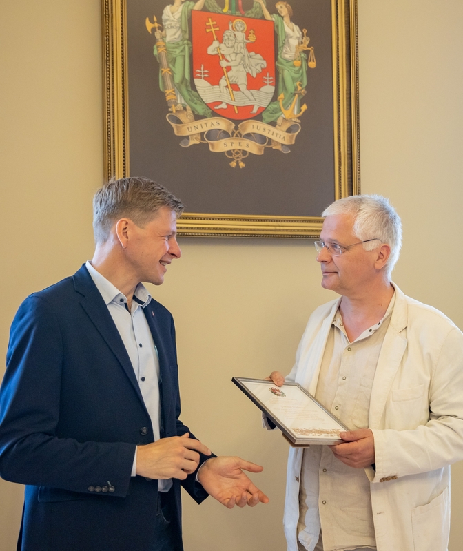 Gitenis Umbrasas, atsiimdamas apdovanojimą, pasakojo apie savo naujus darbus, tikslus ir planus - šiuo metu kuriamą Šv. Kristoforo mozaiką Europos aikštei ir patikino, kad bendradarbiavimas tęsis.