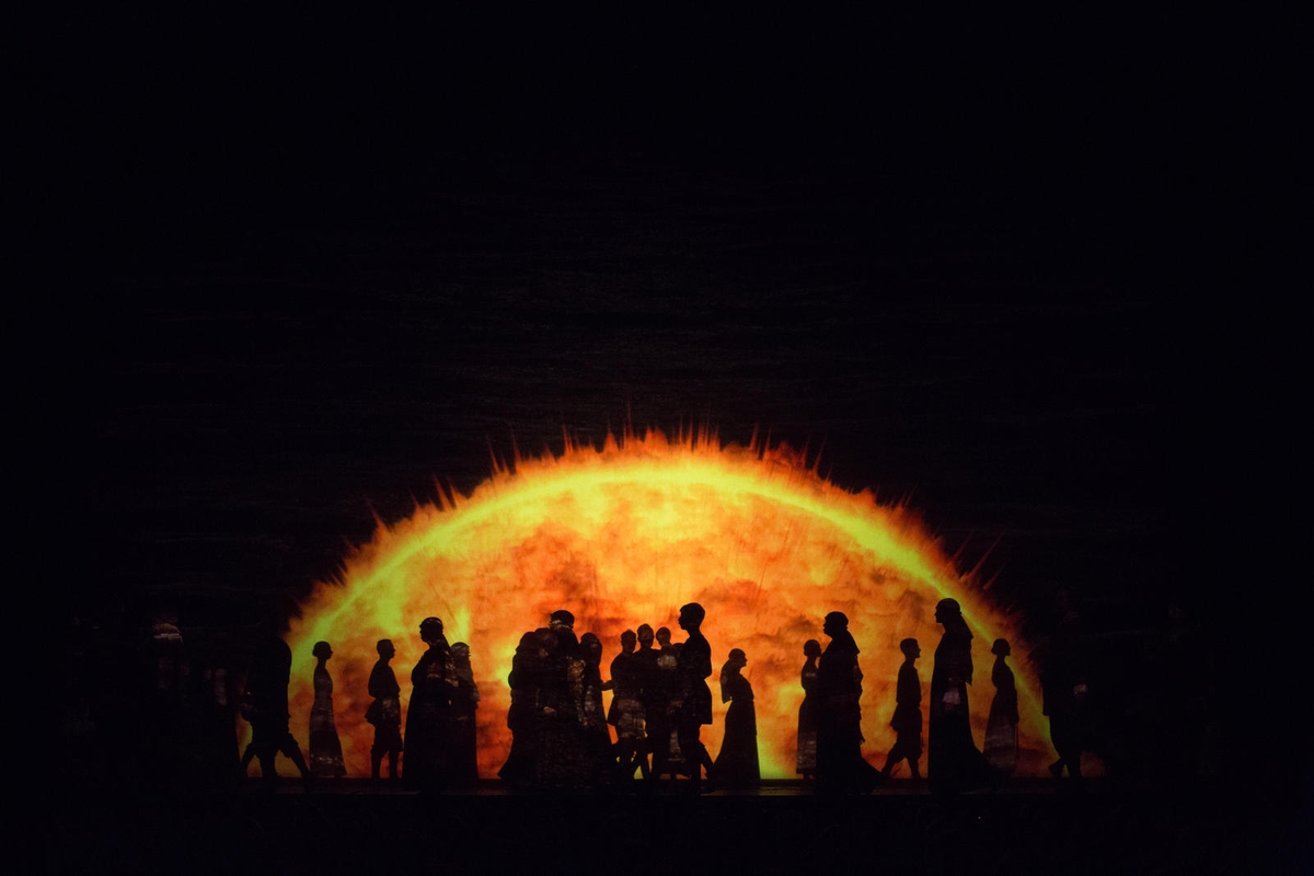 Misterijos „Dievai ir žmonės“ premjera buvo rodoma 2019 m. pavasarį ir jau tada surinko pilnas sales žiūrovų. Šį rudenį spektaklis sugrįžo į valstybinio dainų ir šokių ansamblio „Lietuva“ repertuarą ir pasirodė Kaune, Šiauliuose, Alytuje, o penktadienį turą užbaigė Vilniuje. Programą numatoma tęsti ir 2020 m. rudenį.