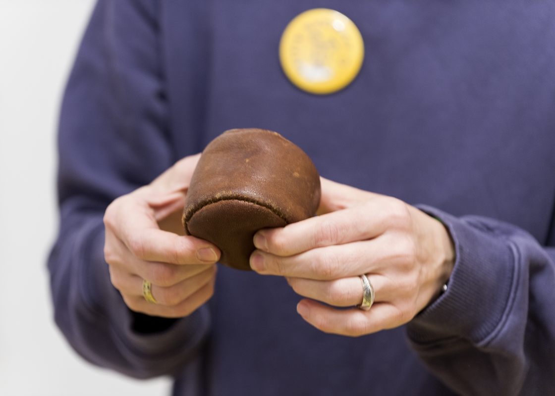 Svoris: bet kuri gniūžtė yra kamuolio prototipas. Tik jei paimate sniego gniūžtę, ji ištirpsta. Žolę galima suspausti, bet trumpam. Todėl reikėjo sugalvoti, kaip padaryti, kad kamuolys išliktų, tad pasiuvo apvalkalą. Tada jį reikėjo kažko prikimšti, nes nebuvo gumos. Todėl tie kamuoliai nebuvo dideli – dėl didelio kiekio kamšalo jie būtų per sunkūs. Didėti jie pradėjo tik tada, kai atsirado technologinių galimybių. Dabar, pavyzdžiui, pagal kamuolio formą ir dydį sprendžiame, koks bus žaidimas, o kadaise spręsdavo pagal kamuolio vidų. / B. Barausko nuotr.
