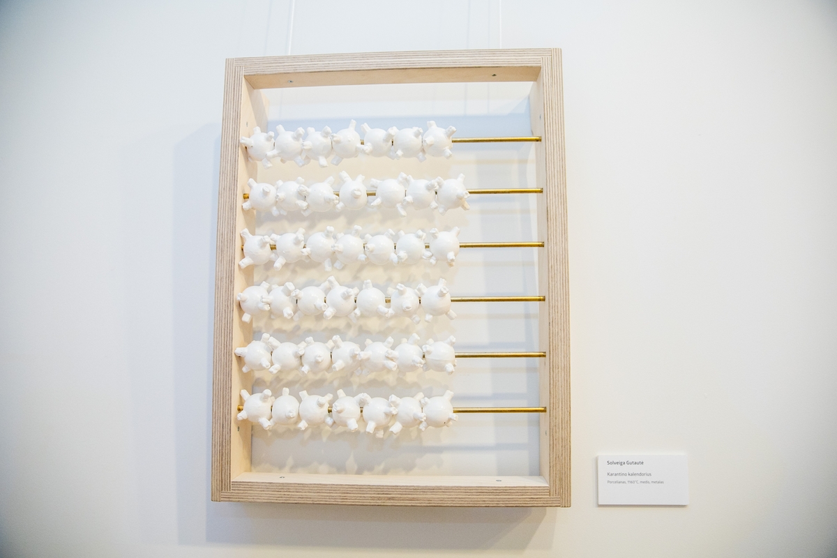 – Yra keletas darbų, kurie tiesiogiai siejasi, turi ir tiesioginį pavadinimą, pavyzdžiui, Giedriaus Mazūro kūrinys – "Naujas antivirusas". Aš taip pat kūriau pačiame pavasarinio karantino įkarštyje ir tiesiogiai sieju savo darbą su naująja karantino patirtimi, – pavadinau jį "Karantino kalendoriumi". Tos tendencijos kitų menininkų kūriniuose galbūt atsispindi netiesiogiai.