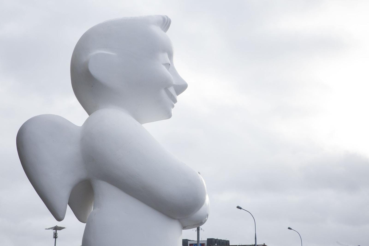 Jie tapo sostinės, skelbiamos kaip žemai skraidančių angelų miestu, simboliu. Pirmą žiemos dieną sostinės centre, šalia prekybos centro VCUP, iš upės pusės „nutūpė“ dar vienas Baltasis angelas. Tiesa, šis yra išskirtinis – didžiausias iš visų kitų 200 angelų, puošiančių Vilniaus gatves ir privačių namų kiemus – net 4 metrų aukščio!