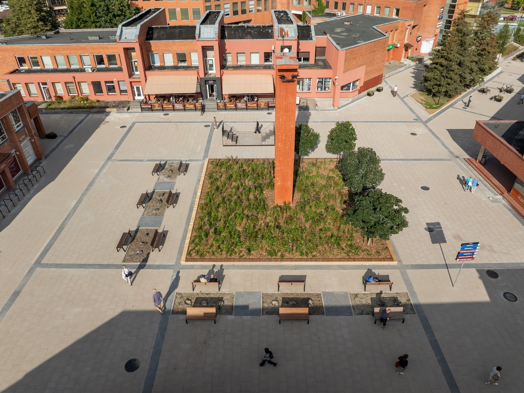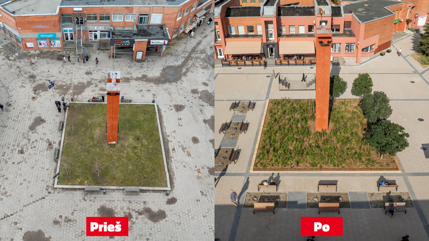 Šiemet atnaujinta aikštė tapo jaukesnė ir patogesnė: sutvarkytos dangos, suremontuoti laiptai, įrengti nauji suoliukai, atnaujinta fontano sienelė, pasodinti medžiai, krūmai bei daugiamečiai augalai. Viso atnaujinta daugiau kaip 6000 kv. m ploto teritorija. Šis projektas yra ilgalaikės vizijos, parengtos kartu su bendruomene, dalis.