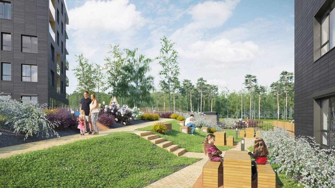 Projektas taip pat išsiskiria investicijomis į aplinką, kurios siekia beveik 4 mln. eurų. Vidiniuose namų kiemuose be fontanų ir vaikų žaidimų aikštelių sukurti net 45 metrų dirbtinis upelis ir bendruomenės aikštės, greta esančiame pušyne atidarytas skulptūrų-suoliukų parkas, kuriam darbus sukūrė žymus Lietuvos skulptoriai. Projekto architekto A. Kaušpėdo suburta landšafto specialistų komanda pasirūpino, kad gyvenamųjų namų komplekse būtų pasodinta daugiau nei 130 skirtingų rūšių augalų ir medžių.