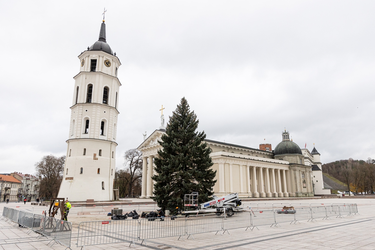 Pirmadienį Vilniuje pakvipo šventėmis. Į Katedros aikštę buvo atgabenta Kalėdų eglė, kuri artimiausiu metu bus pradėta puošti. Šalia jos įsikurs ir kalėdinis miestelis.