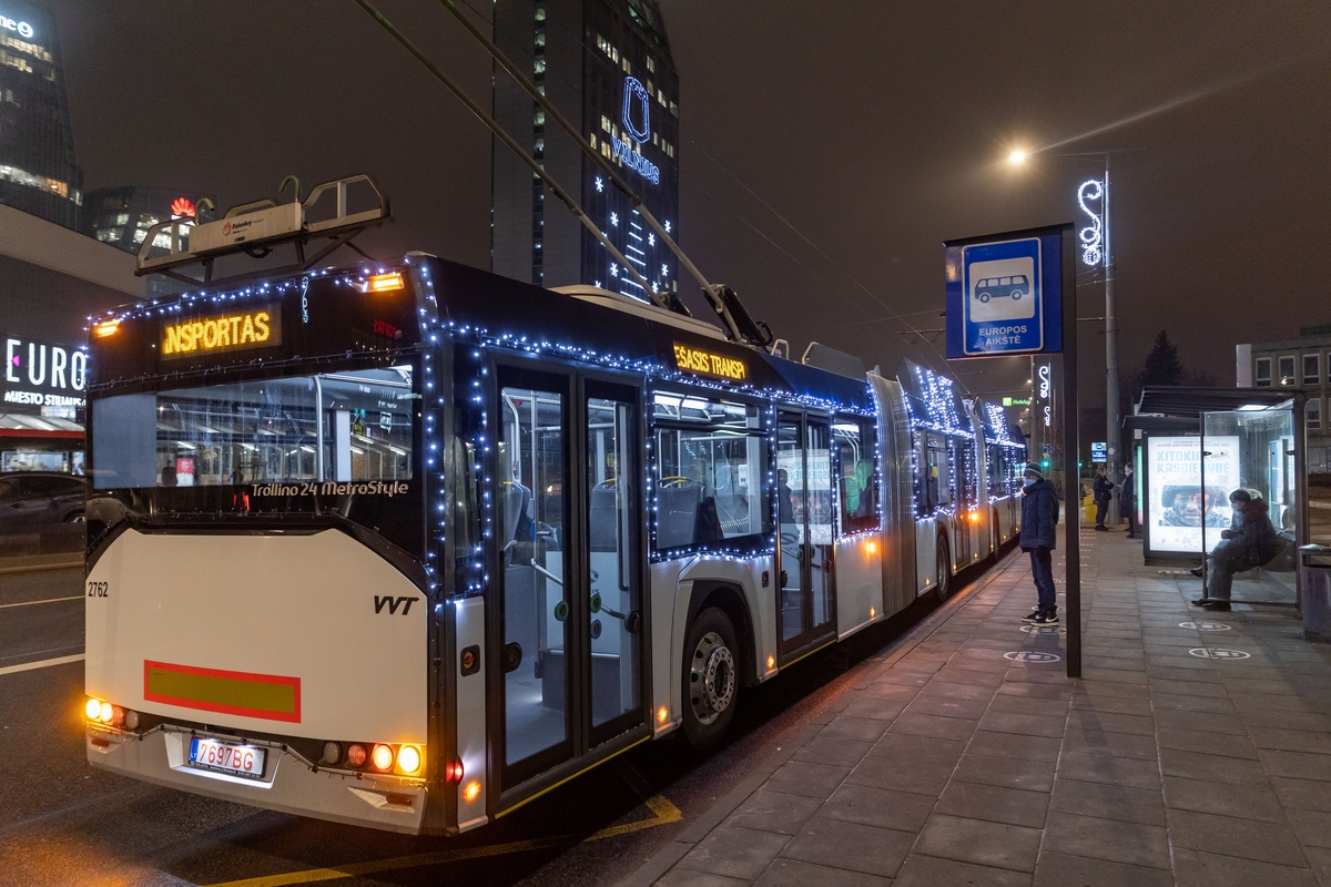 Naująjį troleibusą iš kitų „Vilniaus viešojo transporto“ parko transporto priemonių išskiria ne tik ilgis, bet ir išvaizda – specialiai šventiniam laikotarpiui troleibusas papuoštas šimtais lempučių.