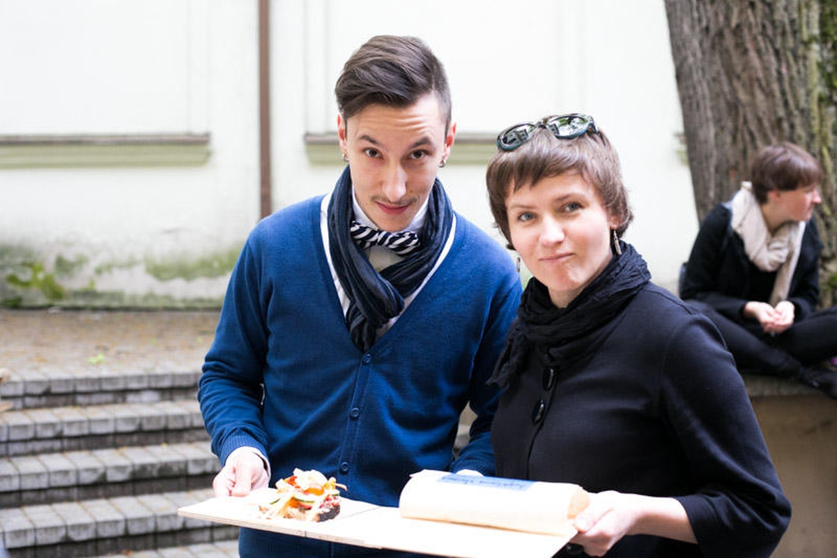 Vakar vykusiame maisto dirbtuvių atidaryme savo sumuštinius pagamino ir ragauti paliko VDA dizaino katedros vedėjas, dizaineris Juozas Brundza, grafinio dizaino katedros docentas Robertas Jucaitis, drabužių dizaineris Aleksandras Pogrebnojus.