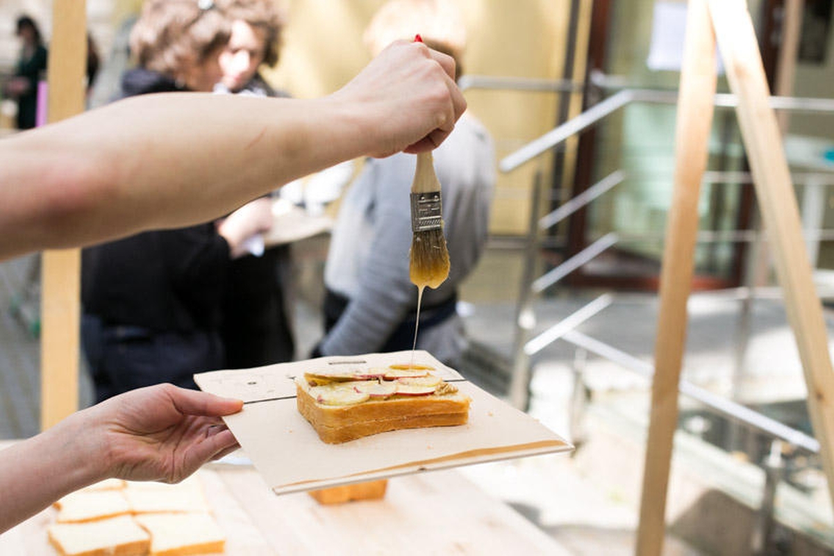 Vilniaus dailės akademijoje vykstanti jaunųjų dizainerių platforma „Dizaino pjūvis 2014” ir Electrolux maisto ir dizaino laboratorija besidominčius maisto dizainu vakar pakvietė sudalyvauti maisto dirbtuvėse „Sumuštinių mainai“ ir į ryto bei kelionių ritualo simbolį pažiūrėti per dizaino prizmę.