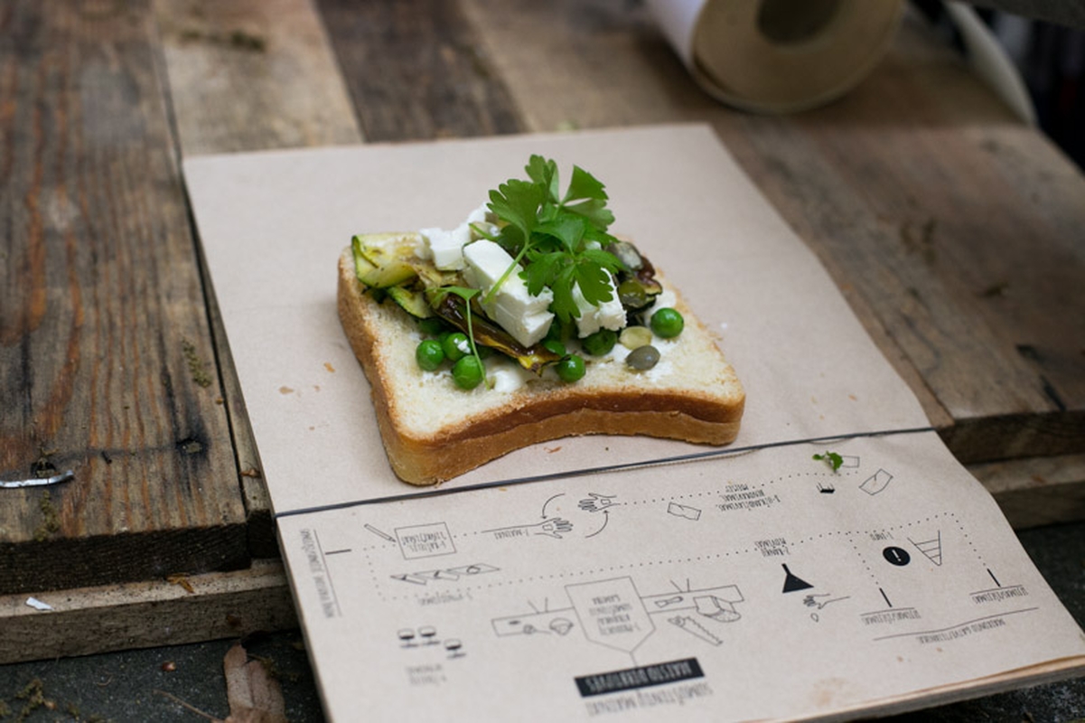 VDA pastatos „Titanikas“ vidiniame kiemelyje sukonstruotame šiltnamyje kiekvienas, pasitelkdamas virtuvėje neįprastas priemones – pjūklą, špakliavimo lentelę, plaktuką ar statybinį feną – galėjo realizuoti savo sumuštinio idėją. Tačiau, pagaminęs sumuštinį, dirbtuvių dalyvis turi jį supakuoti, parašyti linkėjimą ir palikti jį specialiai tam numatytoje vietoje, ragavimui pasirinkdamas anksčiau kažkieno pagamintą sumuštinį.