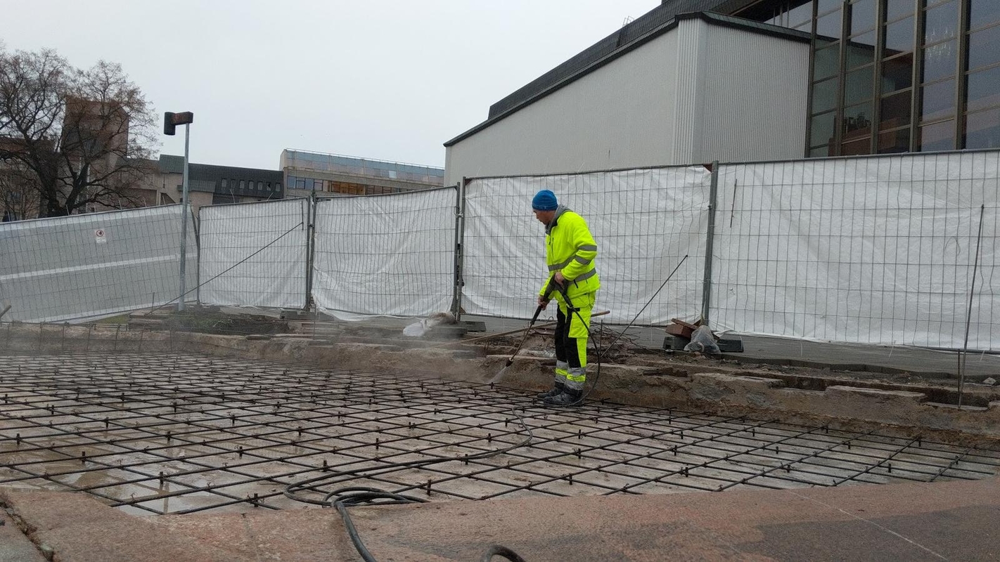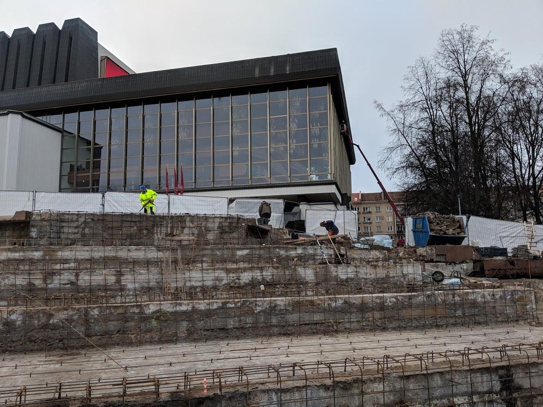 „Šiuo metu, kol nesulaukėme didelių šalčių, vyksta betono konstrukcijų armavimas, betonavimas ir hidroizoliavimo procedūros. Vaizdas, iš tiesų, ne pats gražiausias, aikštelė primena karo zoną, kurioje dieną iš dienos triukšmaudami darbo įrankiais pluša statybininkai“, – atkreipia dėmesį rangovas.