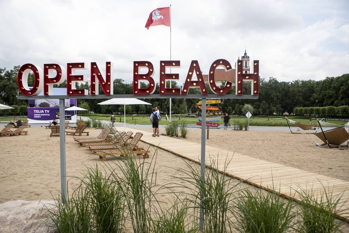 Tai – Vilniaus atsakas į karantino sukurtus ribojimus. „Open Beach“ turi visus paplūdimiui būdingus atributus – gultus, skėčius, paplūdimio tinklinio aikštelę, persirengimo būdelę ir net specialiai paplūdimiui pritaikytas darbo vietas su nemokamu internetu.