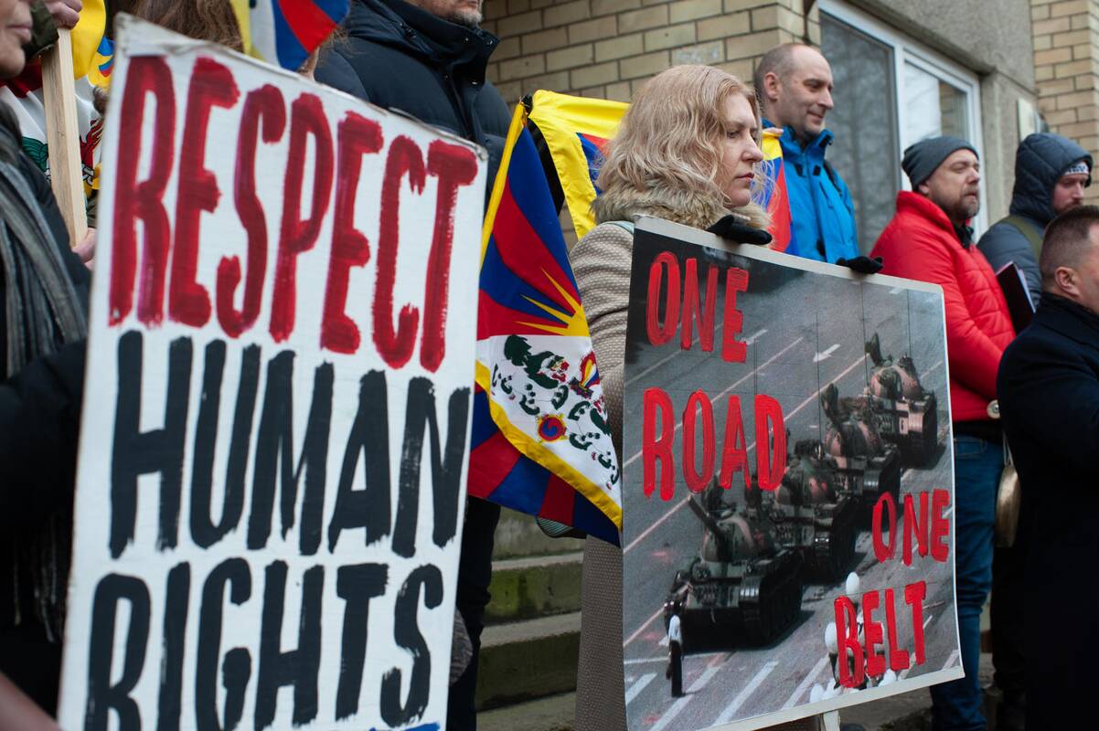 Proteste prie Kinijos ambasados dalyvavo apie dvidešimt Tibeto vėliavomis ir spalvomis pasipuošusių žmonių, kurie teigė smerkiantys komunistinės Kinijos agresiją Tibete ir reikalaujantys atkreipti dėmesį į nuolatinius Kinijos vyriausybės žmogaus teisių pažeidimus.