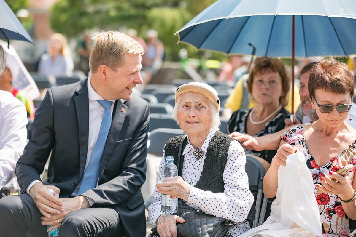 „Birželio 14 dieną galvoju apie viltį: nes iš ko kito jei ne iš Jūsų tos vilties galime geriau pasimokyti – iš praradusių tėvynę, laisvę ir artimuosius, visą laiką puoselėjusių viltį sugrįžti į Lietuvą. Mano senelio sesuo tremtinė sako, kad nėra gyvenime sutikusi nė vieno blogo žmogaus. Man tai yra vilties išraiška – ji leidžia pamatyti šviesos spindulėlį net ten, kur yra visiška tamsa. Šiandien galime džiaugtis, kad gyvename Vilniuje – laisvos šalies laisvoje sostinėje ir dėkoju jums visiems už viltį, linkėdamas ją kuo ilgiau skleisti“, – sako Vilniaus meras Remigijus Šimašius