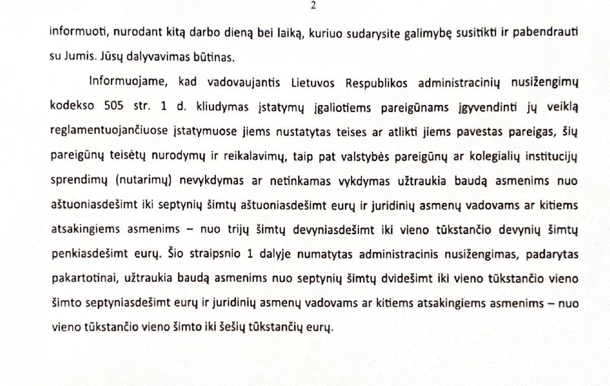 „Jame buvo tik nurodymas atvykti pasikalbėti ir pasiūlymas susitarti dėl kito laiko, jeigu nurodytas laikas man netinkamas. Tačiau atsakymų į klausimus laiške nebuvo“, – pakomentavo vyras.
