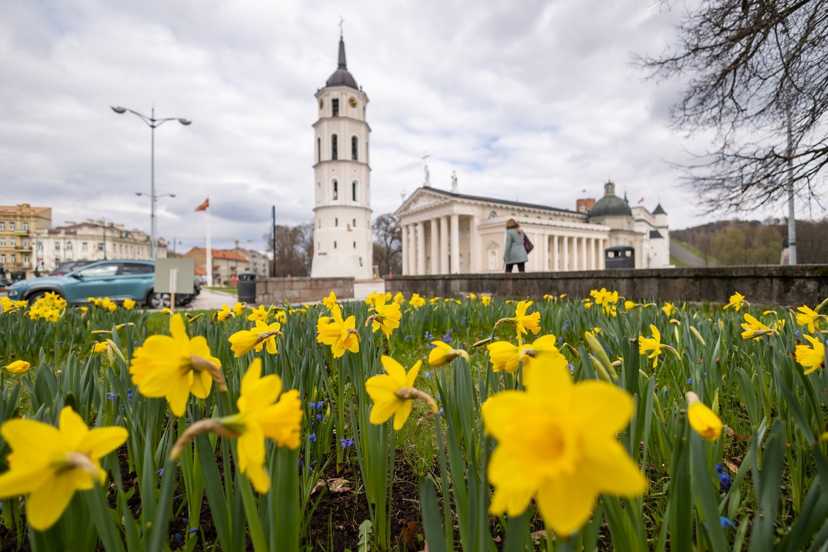 Pavasarinės gėlės jau žydi terasose prie Lietuvos nacionalinio operos ir baleto teatro, Bernardinų sode sužydo pernai rudenį pasodintų per 60 tūkst. pavasarinių gėlių svogūnėlių, prie Katedros aikštės iš narcizų suformuotas 700 ženklas – pavasarinis pasveikinimas miestui, švenčiančiam 700 metų jubiliejų.