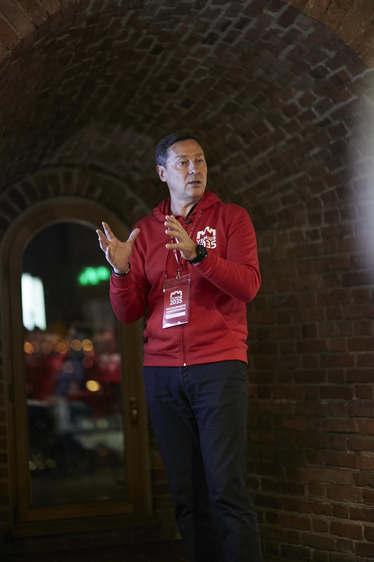 Nacionalinės plėtros instituto vadovas Mindaugas Kiznis, kuris yra ir VšĮ „Vilnius 2035“ steigėjas sakė, kad Vilniui šiandien būtina pasirengti naujam šuoliui į priekį.