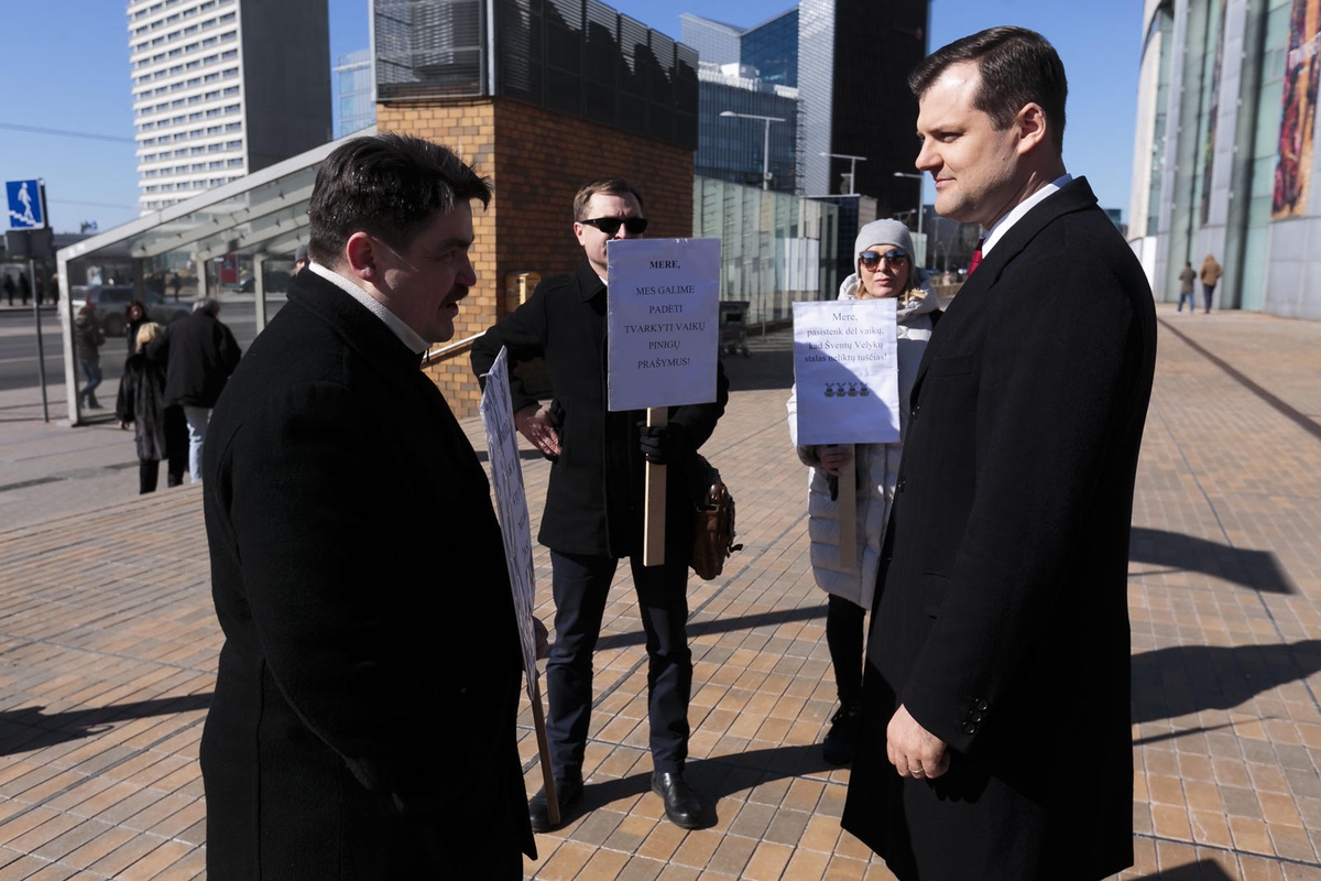 Bendrijos vadovas nenori, kad Vilnius, kuriame neperžiūrėtų prašymų „vaiko pinigams“ gauti - daugiausia, atsiliktų nuo Kauno. „Todėl organizuojame pagalbą Vilniaus merui“, - ironizavo vienas iš pilietinės akcijos organizatorių.