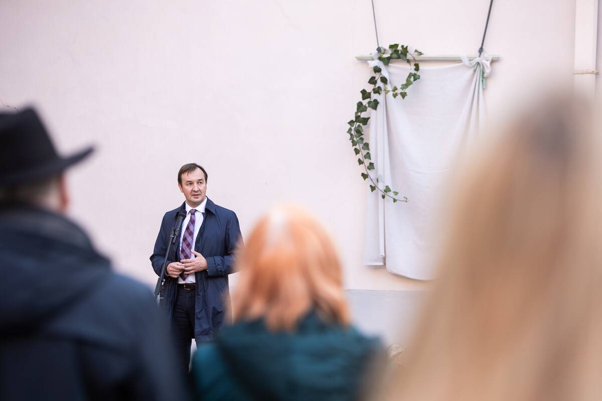 Poetui ir dėstytojui skirta atminimo lenta papildys M. K. Sarbievijaus kiemo simbolinę atminties architektūrą, kuri įamžina čia studijavusius ir dirbusius žymius poetus.