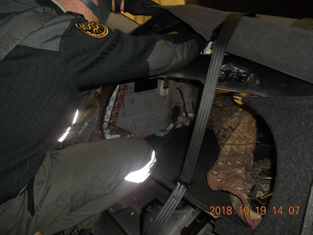 Kaip antradienį pranešė Muitinės kriminalinė tarnyba, spalio 19 dieną į Medininkų kelio postą atvykus automobiliui „Volvo S 80“, apžiūros metu muitinės pareigūnai pastebėjo, kad pabeldus skiriasi „Volvo“ priekinių ir galinių durelių skleidžiamas garsas.
