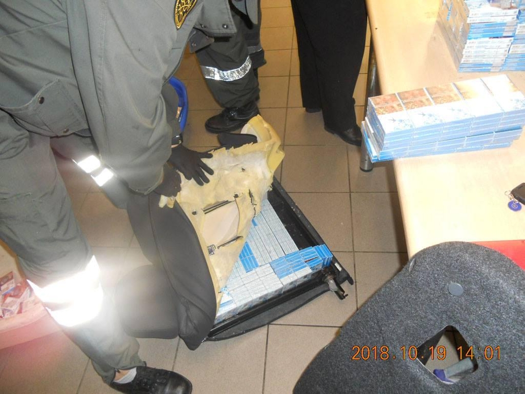 Tuomet mašinoje buvusios slėptuvės buvo išardytos, jose rasta 5,7 tūkst. pakelių cigarečių „Minsk“, „Queen“, „Winston“, „Kent“, „NZ“.