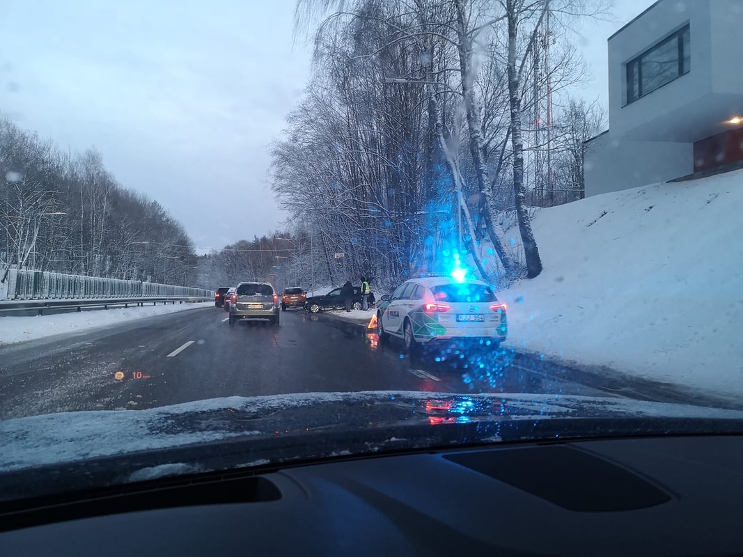9.48 val. Žirmūnuose automobilis susidūrė su troleibusu. Talino gatvėje nuo kelio nuslydo automobilis, o Nemenčinėje dėl slidžios kelio dangos mašina atsidūrė griovyje.