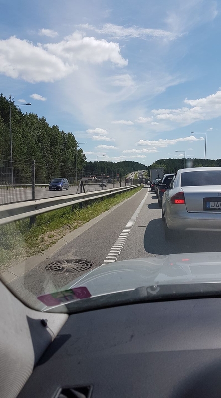 13.52 val. apvirtęs ir eismui trukdęs traktorius pašalintas, todėl transporto spūstys senka eismui normaliai vykstant abejomis eismo juostomis.