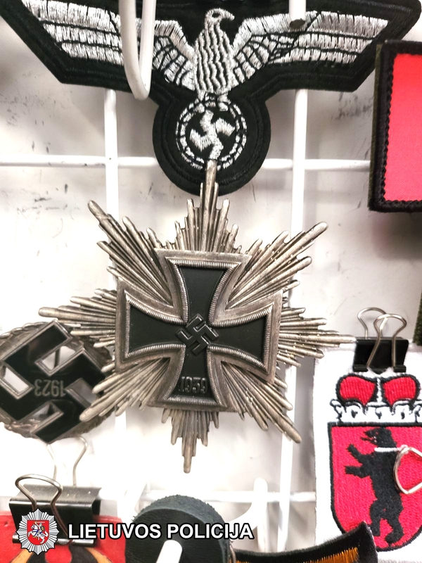 Vilniaus apskrities vyriausiasis policijos komisariatas skelbia, kad sostinės pareigūnus nustebino prekeivis, kuris visą pasaulį sukrėtusių dabartinių įvykių fone atvirai prekiavo uždraustais nacistiniais ir komunistiniais ženklais – jis viso jis turėjo 8 vienetus įvairios simbolikos.