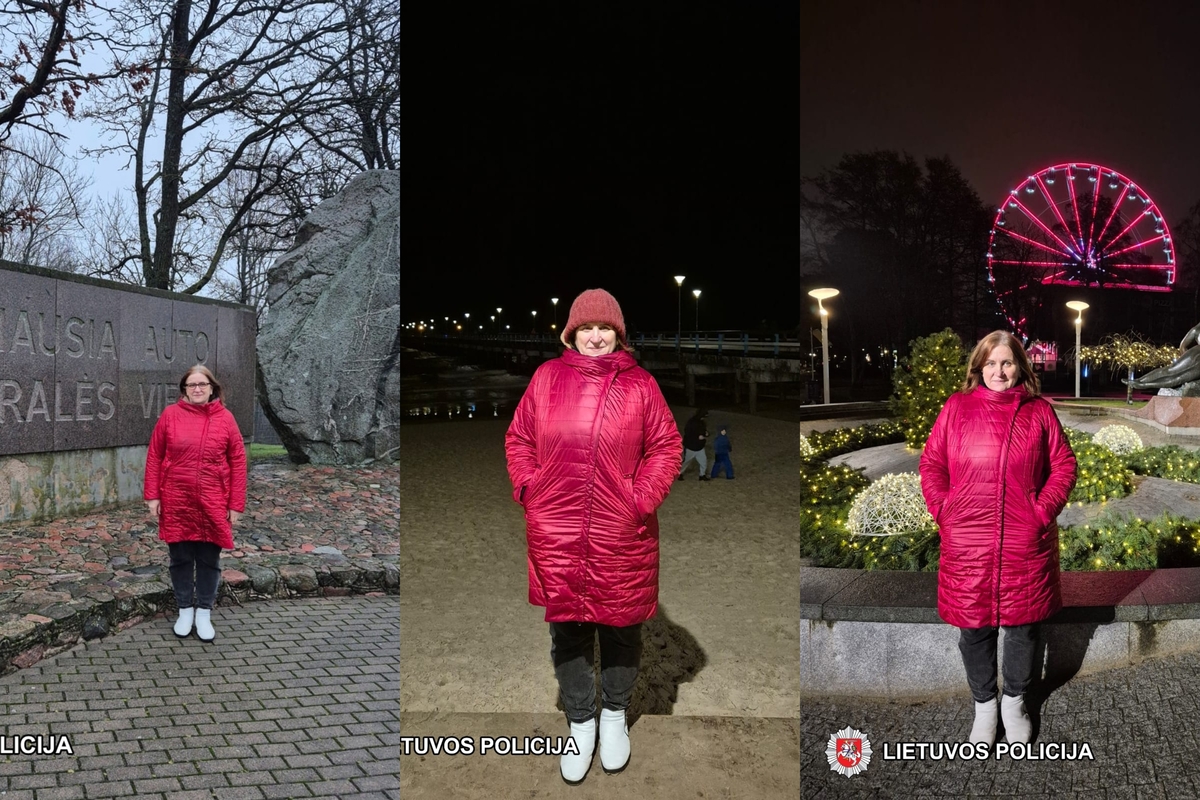 Ieškomos moters požymiai: apie 170 cm ūgio, stambaus kūno sudėjimo, rudų žemiau pečių plaukų, mėlynų akių. Moteris tatuiruočių ir randų neturi.