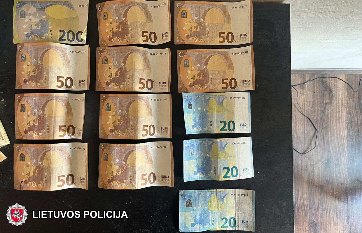Rasta ir 11 tūkst. eurų, galimai gautų iš narkotikų platinimo, taip pat priemonės jiems dalinti, sverti, fasuoti.