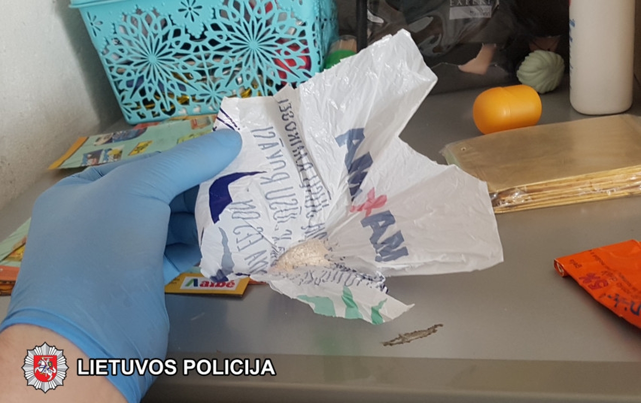 Per kratą rasti du popieriaus lankstinukai su narkotinėmis medžiagomis, apie 23 g grynųjų narkotinių medžiagų ir priemonės narkotinėms medžiagoms sverti bei fasuoti. Taip pat rasti 200 eurų smulkiomis kupiūromis bei monetomis, kurie, kaip manoma, gauti nusikalstamu būdu.
